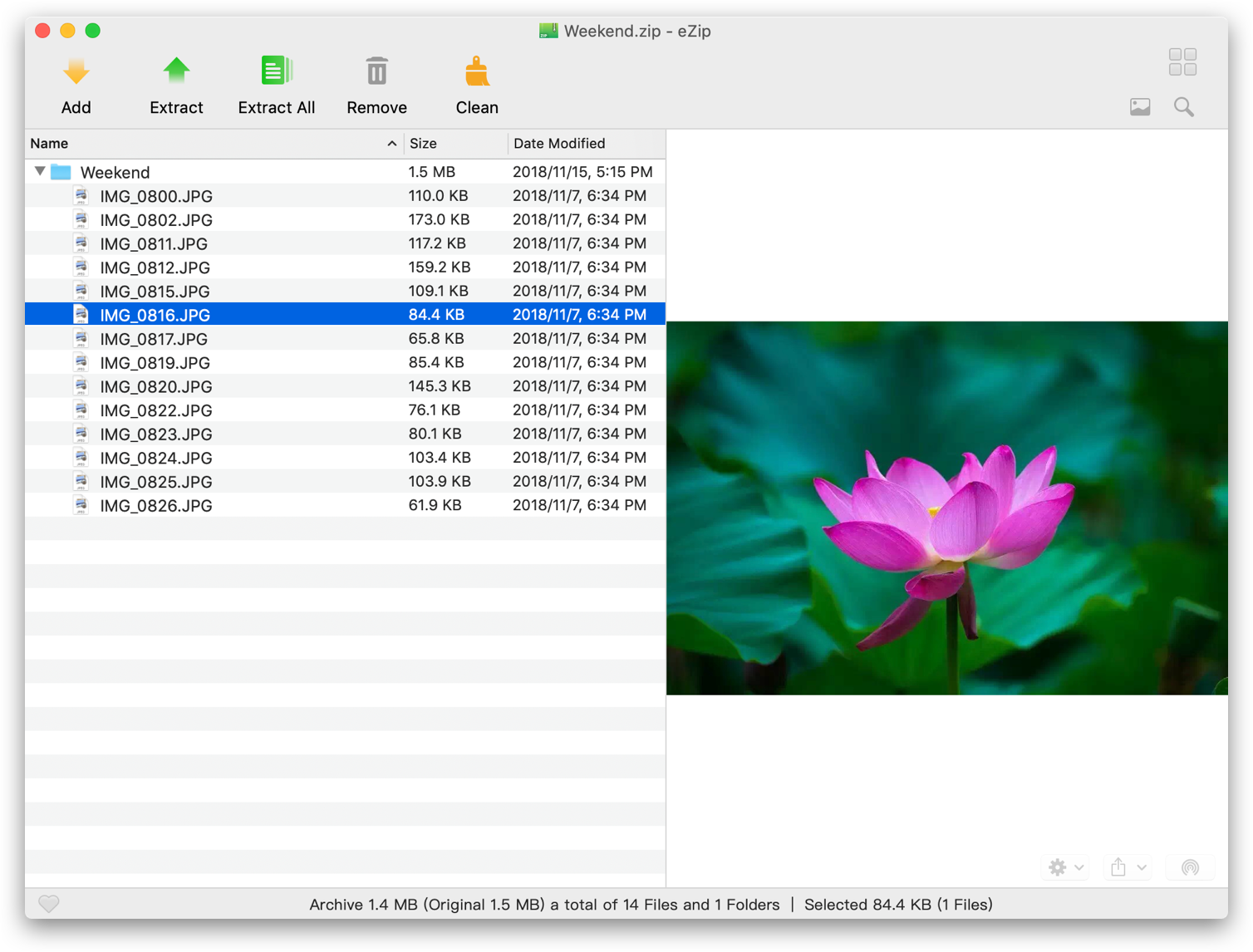5. Support space to preview file in the compressed package.
