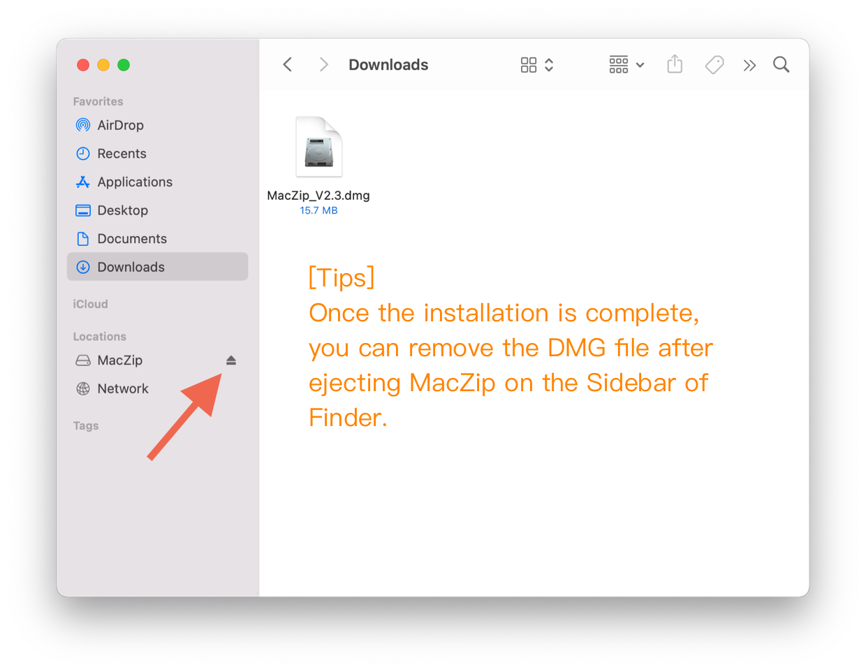 Open the downloaded file “MacZip.dmg”.
